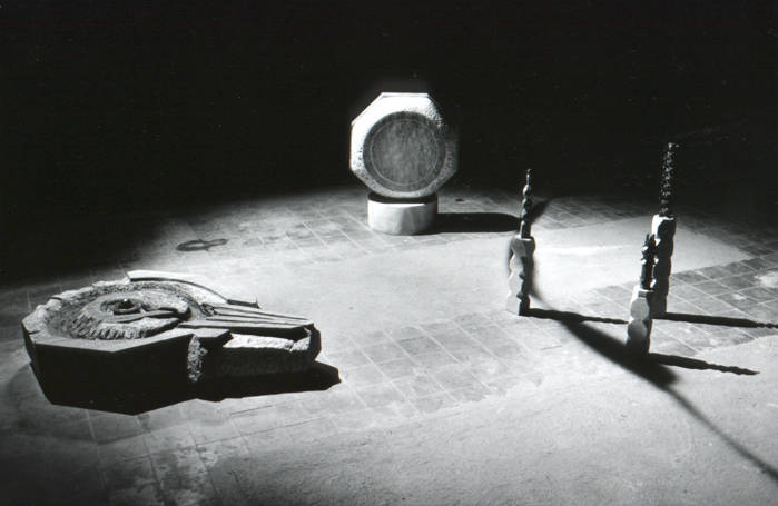 del I: 105 x 65 x 23 cm, marmor, brons, vattendel II: 90 x 70 x 30 cm, marmor del III: h: 40, 50 resp 65 cm, brons och marmor