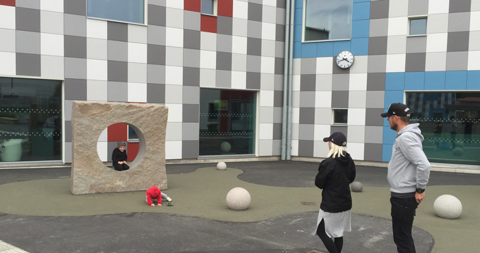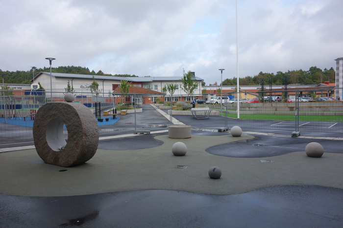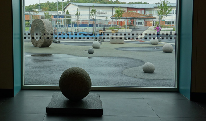 Kolla bollarna, sculpture of granite, Kolla School, Kungsbacka, 2015