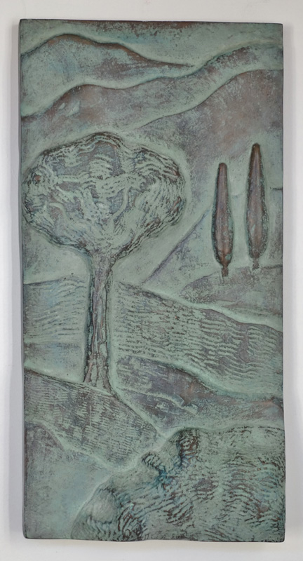 Landskap med cypresser II, brons, 60x30x7 cm, 2016.