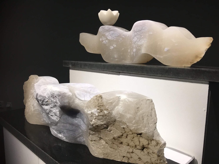 Vågrörelser, 60x60x30 cm vardera, alabaster och diabas